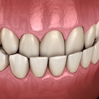 Crossbite is a mixture of underbite and overbite where only some of the lower teeth sit in front of the upper teeth. This miss-matched bite problem puts excess stress on the jaw joints, which can cause them to become irritated, stiff, and sore over time. Crossbite is usually best addressed with traditional braces, which can help guide teeth into better positions for an improved look and feel.